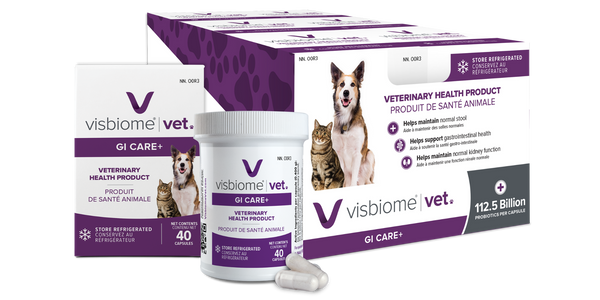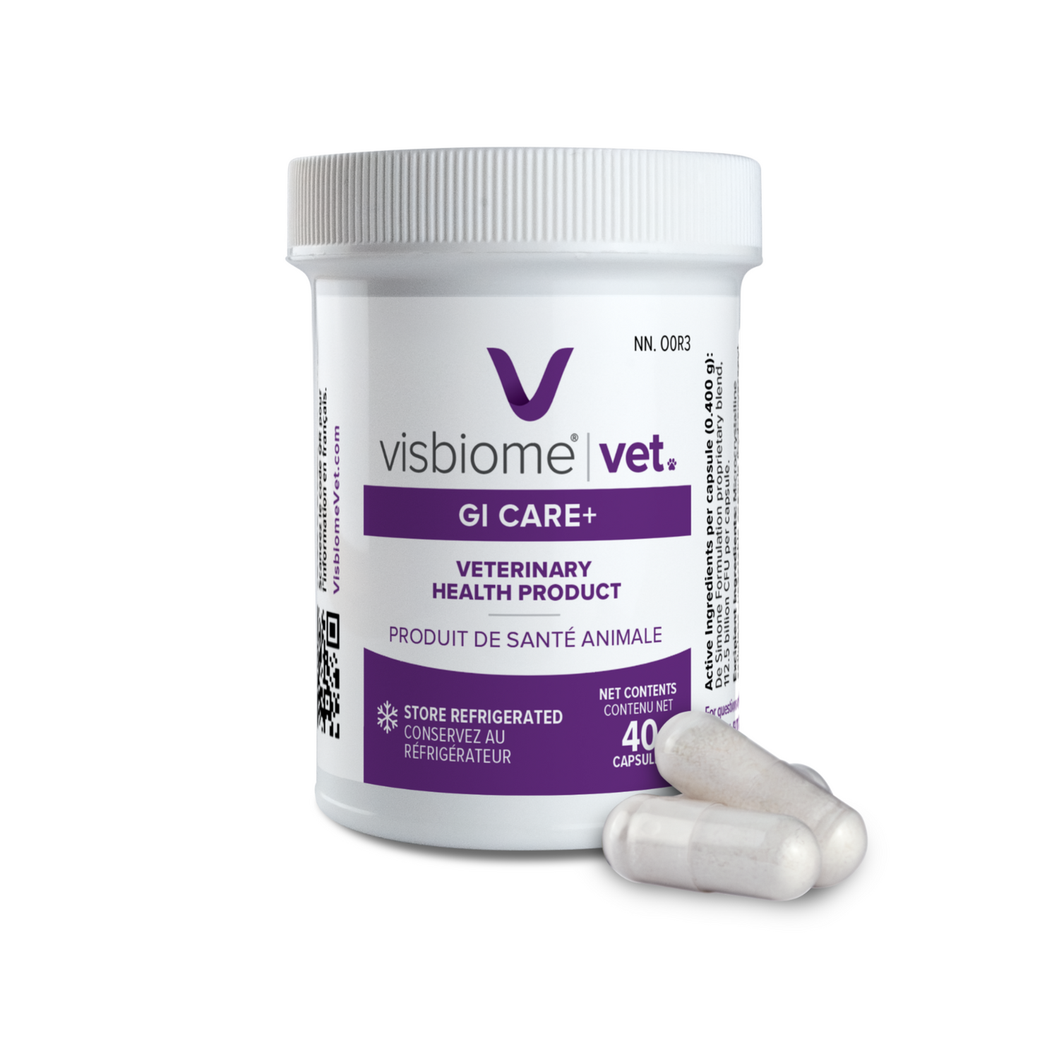 Visbiome Vet GI Care+ helps maintain normal stool, supports gastrointestinal health, promotes a healthy gastrointestinal immune system, and helps maintain normal kidney function.